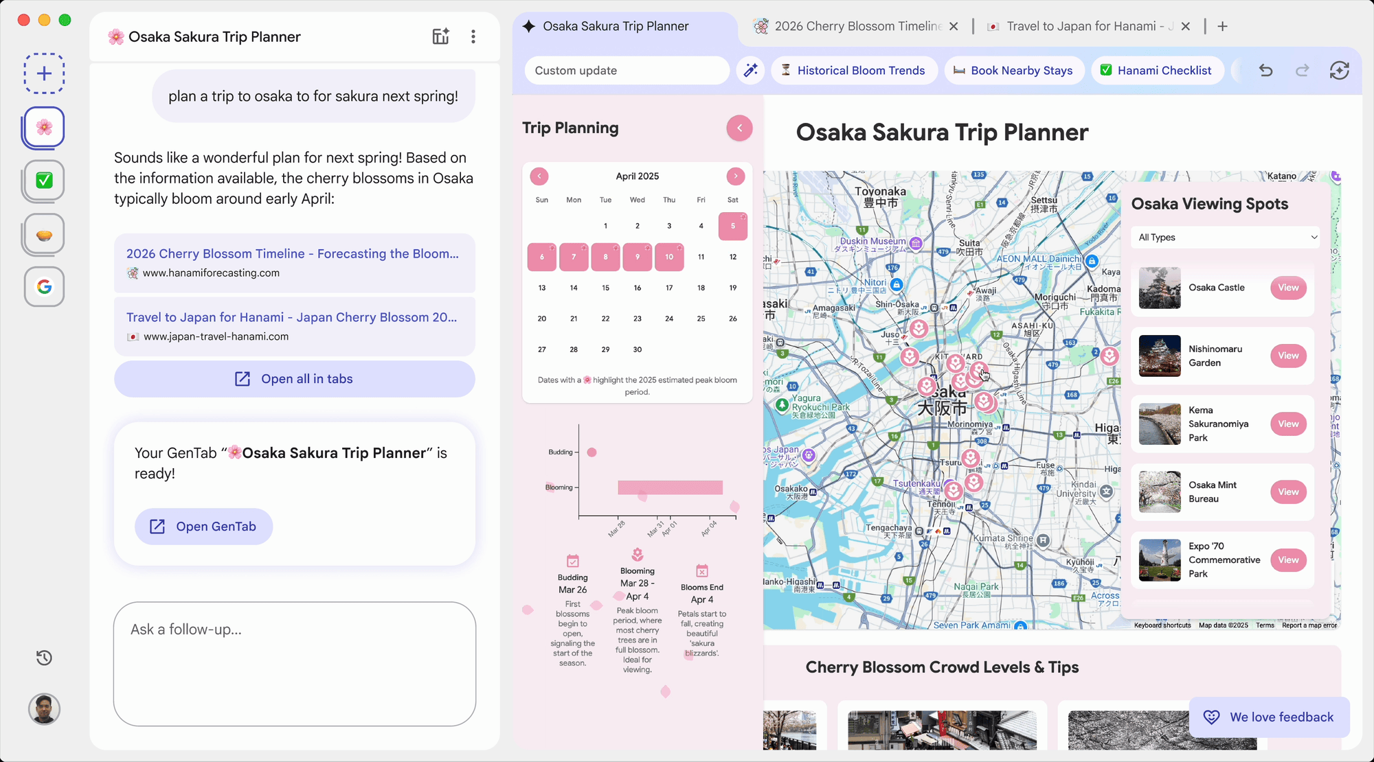 Google appelle cela la “programmation par l’intuition“; soit une session où l’utilisateur n’a plus besoin de chercher parmi des centaines de sources, ni même de naviguer sur les pages proposées. Il demande et l’IA crée son guide de voyage de A à Z avec des informations mises en surbrillance comme les distances ou la météo (voir la vidéo, plus haut).