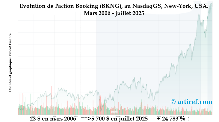 Je ne résiste pas à vous mettre un graphique qui montre la croissance de l’action Priceline/Booking au Nasdaq depuis mars 2006.
