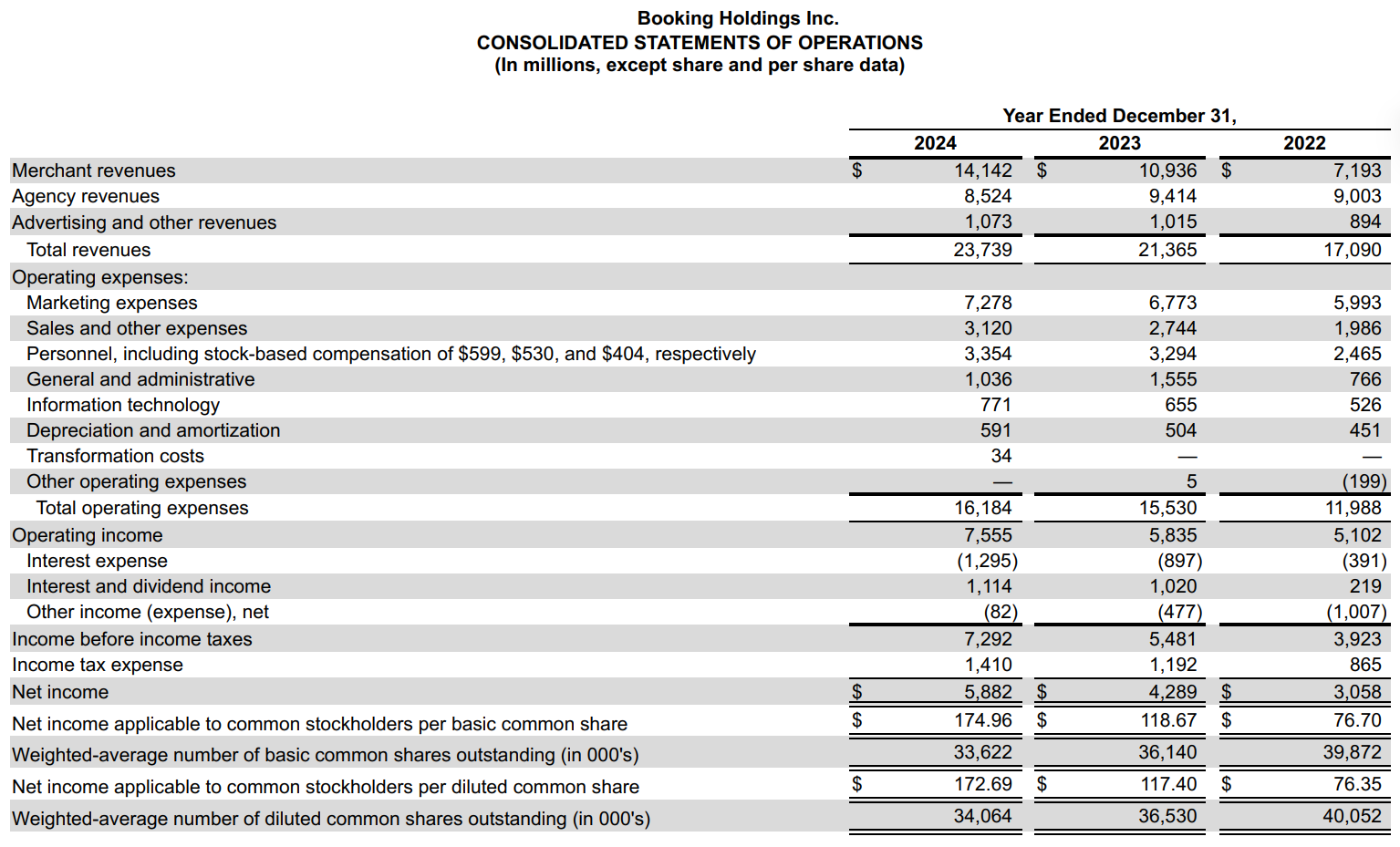 Encore une fois, il s’agit des chiffres consolidés au niveau de la maison mère, Booking Holding.