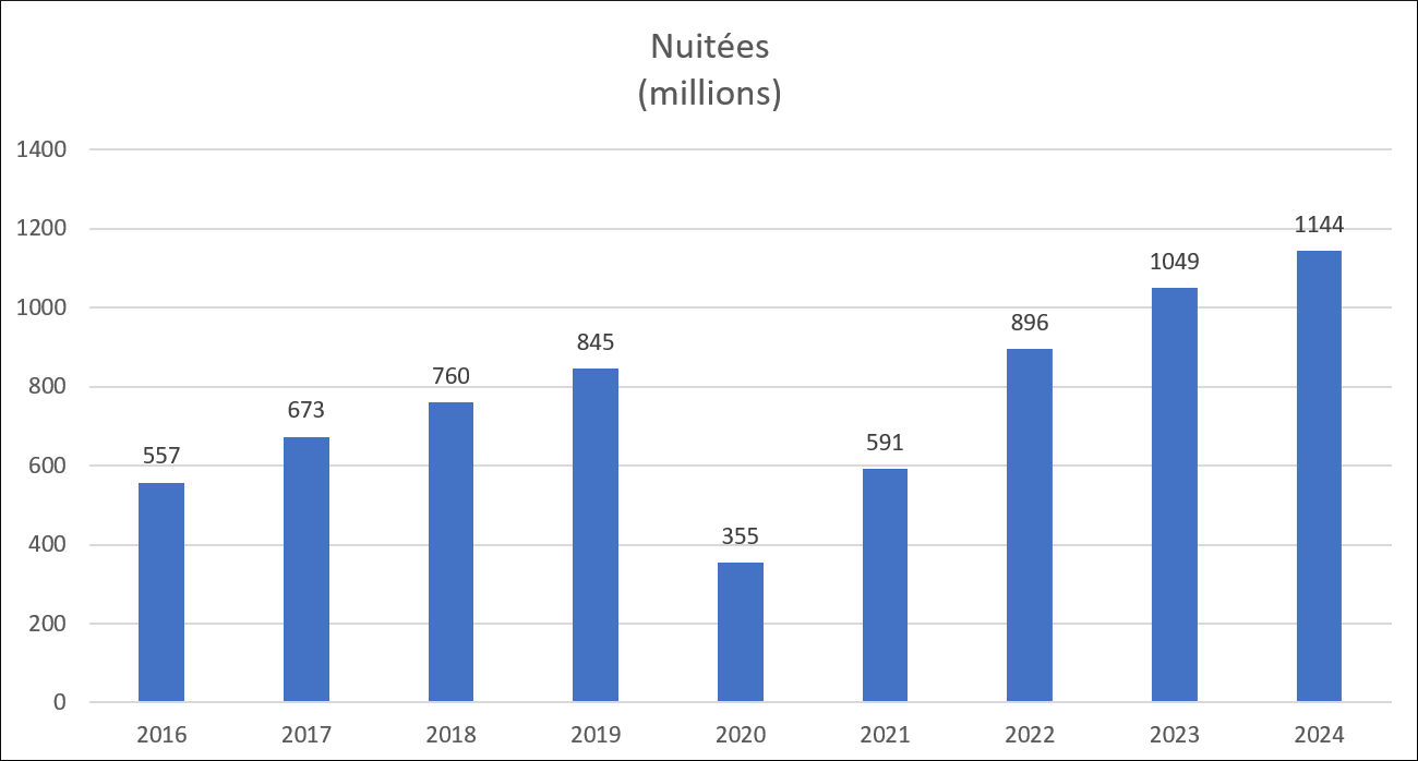 En 2023, Booking avait apporté 1 049 millions de nuitées (896 en 2022)