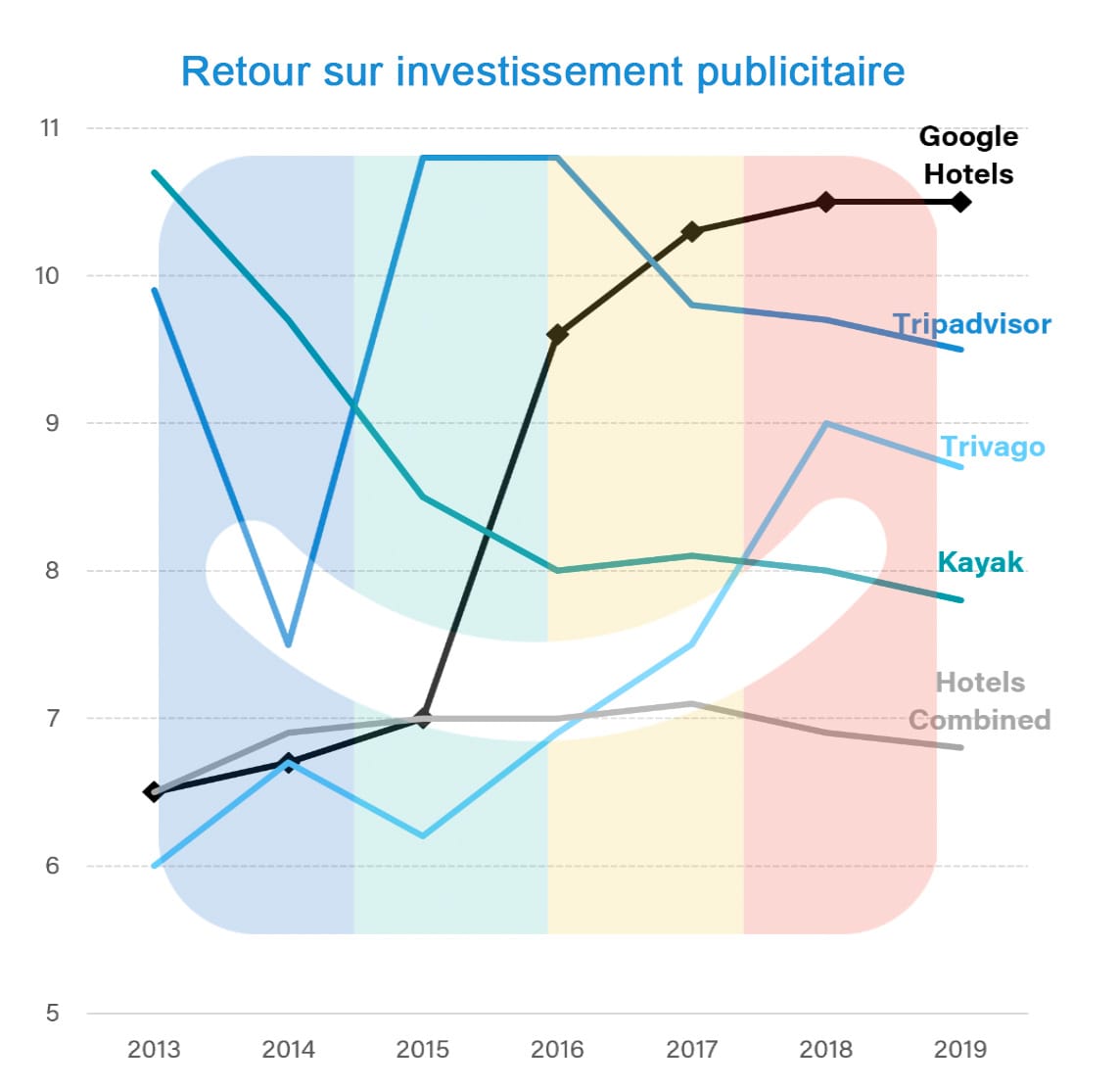 Selon l’étude de Skift, Google se serait non seulement imposé comme le service de comparaison de prix le plus populaire du marché [(pour les raisons que l’on sait)], mais il est devenu aussi le comparateur le plus rentable pour les hébergeurs, bien devant tous ses autres compétiteurs.