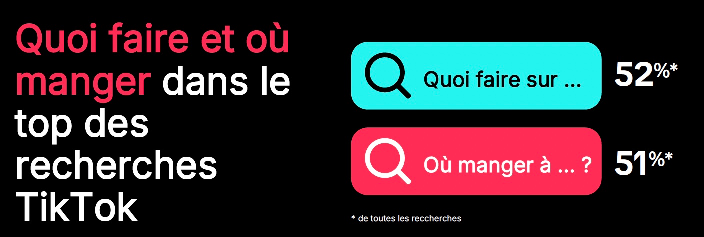 Mieux ! 75% des utilisateurs de TikTok l’utiliseraient même comme moteur de recherche (unique) pour trouver “quoi faire, où manger, etc” sur la destination concernée ou à proximité de leur hébergement …